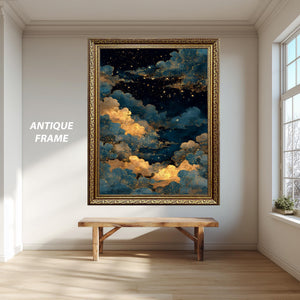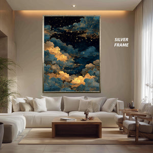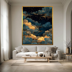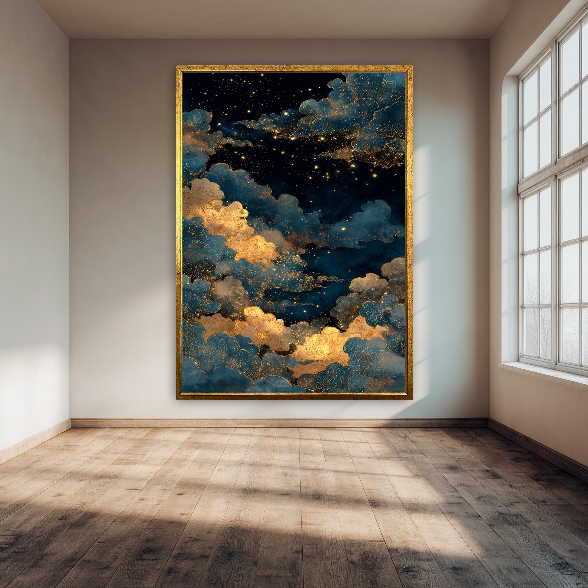 Whether enhancing a modern gallery wall or adding celestial charm to your home office, the Gold Star Cloud Night Sky Canvas Wall Art brings warmth, inspiration, and timeless sophistication. Elevate your interior décor today with this exquisite night sky canvas art that blends artistic mastery with cosmic elegance.