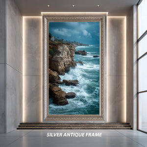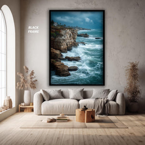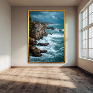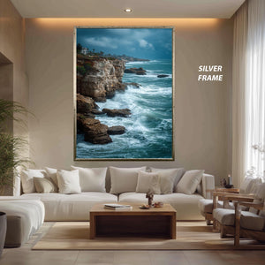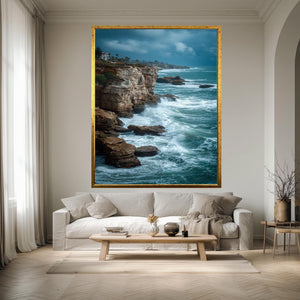 This dramatic ocean cliffside photography print captures the raw power of crashing waves and the moody sky, making it an exceptional coastal wall art piece that transforms any room with nature seascape decor. Featuring a cliffside landscape photo that showcases stormy sea artwork in vivid detail, this canvas wall poster brings the essence of the ocean indoors. Perfect for lovers of minimalist ocean art and modern coastal decor, this dramatic ocean print combines abstract expressionism art with breathtaking seaside photography print quality.