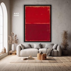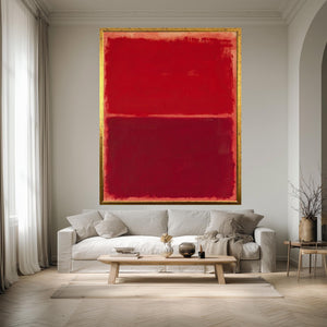 This red abstract canvas print brings bold living room art to your space with its striking minimalist canvas art style. Inspired by Mark Rothko's abstract expressionism print technique, this color block wall art features a deep blue artwork background contrasted by a vibrant red line art that commands attention. Perfect for contemporary home decor or mid century wall decor enthusiasts, this gallery wrapped canvas delivers moody home decoration with an abstract color field that transforms any room.