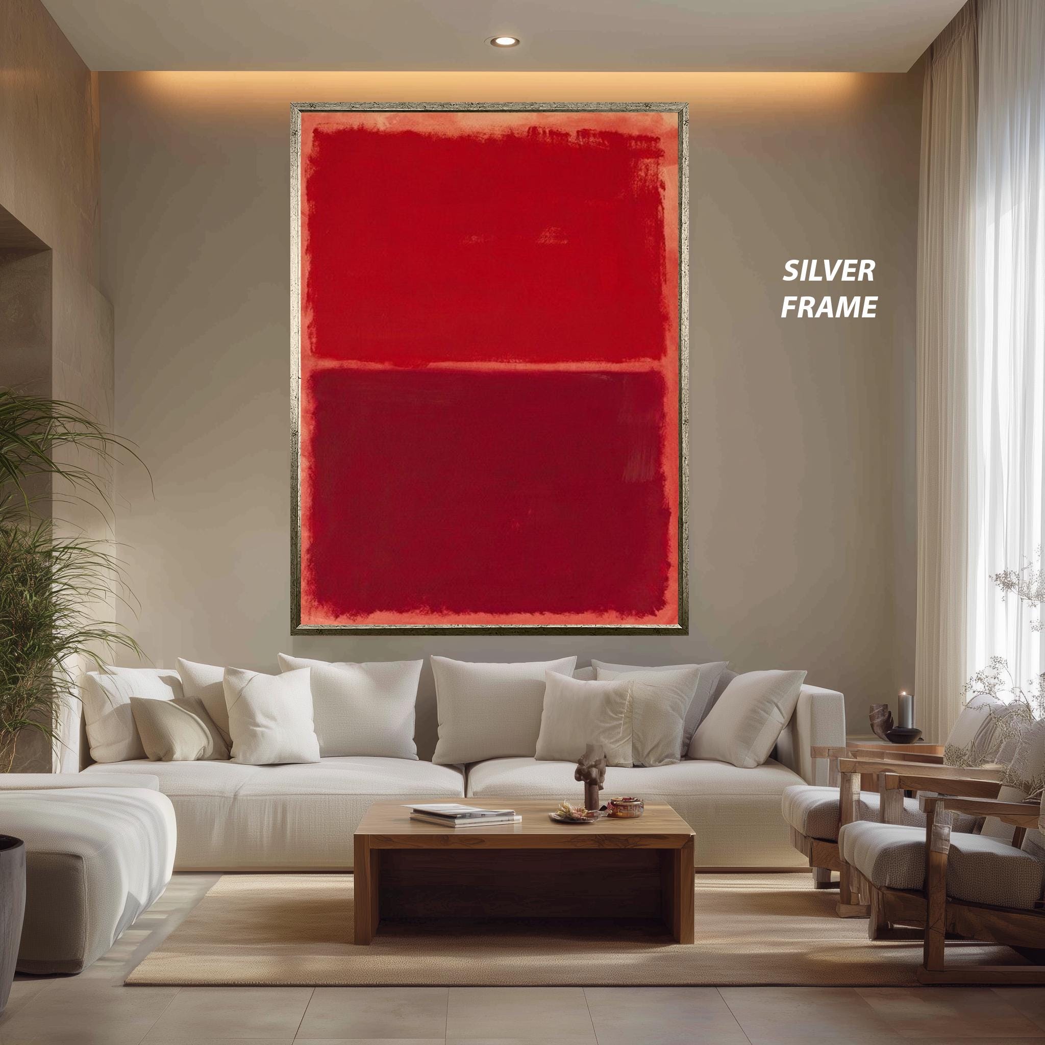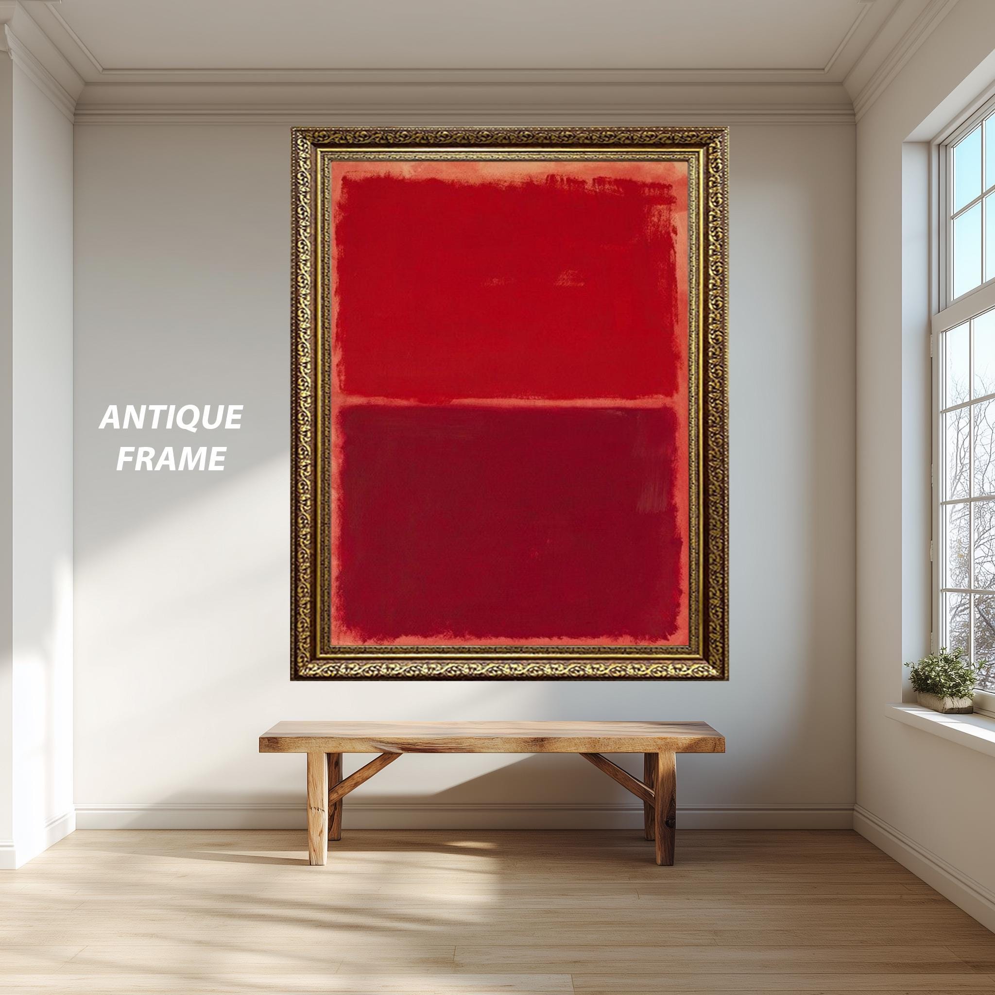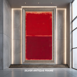 Crafted on museum-quality canvas, this modern red poster is available in multiple sizes ranging from 8"x12" (20x30cm) up to 59"x98" (150x250cm), ensuring the perfect fit for your wall. Choose from roll (unframed) or stretched canvas options, with gallery-wrapped canvas stretched over sturdy wooden bars and ready to hang immediately. Frame choices include classic options like gold, silver, black, white, and brown, as well as luxury frames such as aged gold, antique gold, and antique silver.