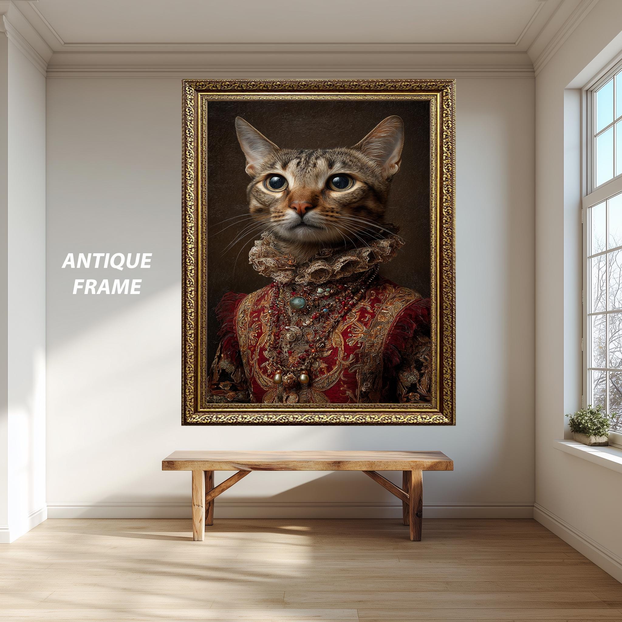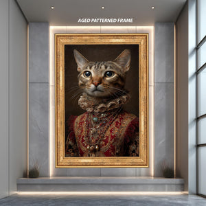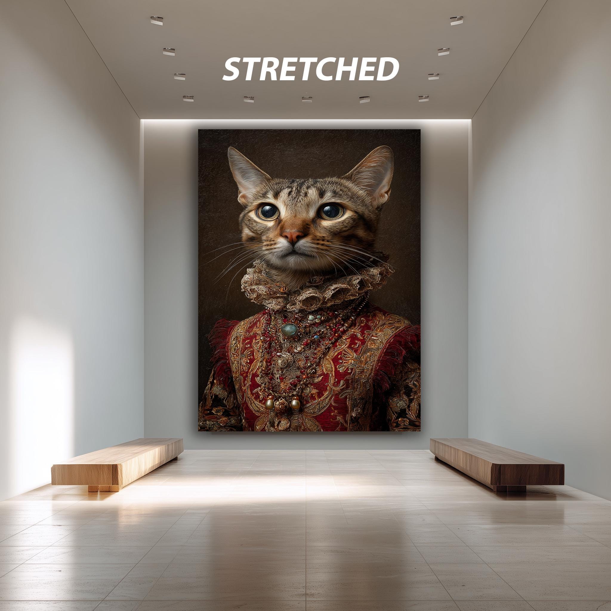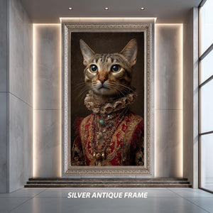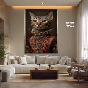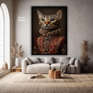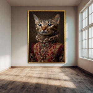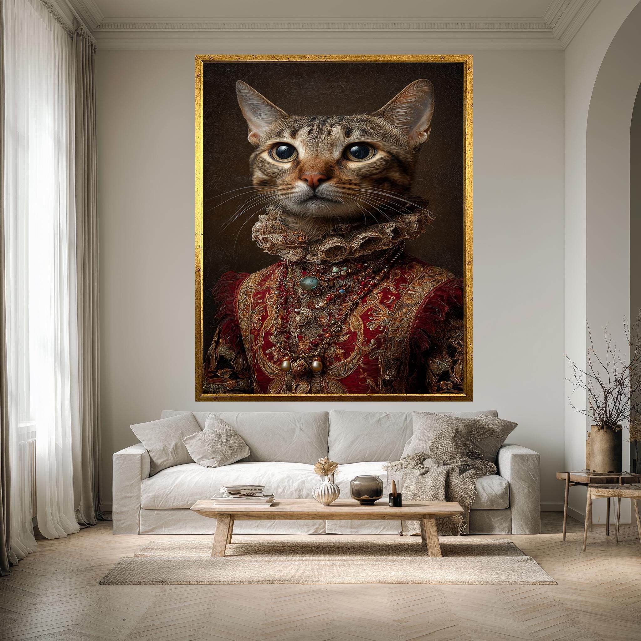 This regal cat portrait captures the charm and humor of a noble tabby cat dressed in a Renaissance royal outfit, making it the perfect cat wall decor for pet lovers seeking unique and funny aristocrat cat art. Crafted as a vintage animal poster, this aristocat art print combines historical style with playful feline personality to elevate any space with royal cat decor that delights and inspires.