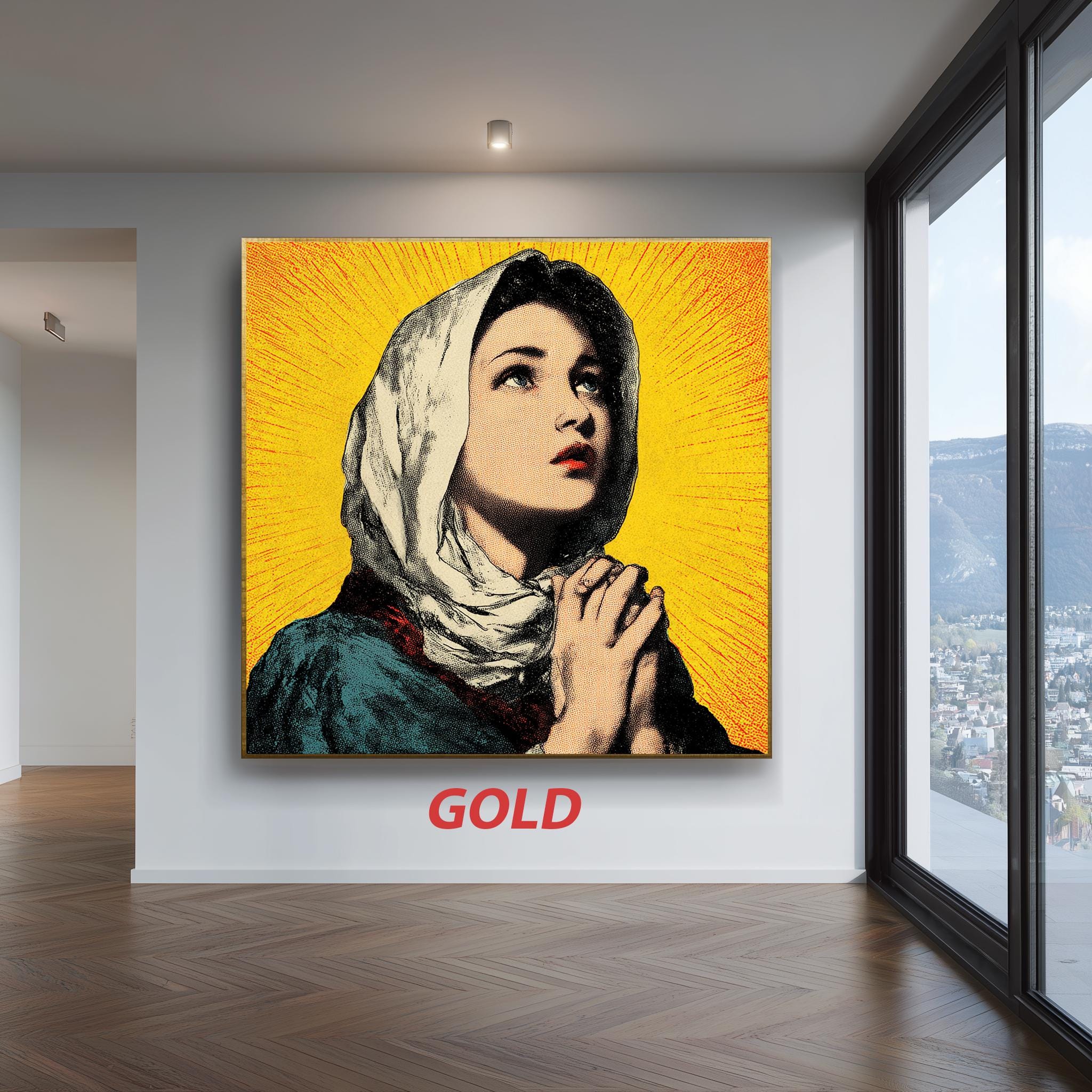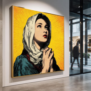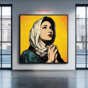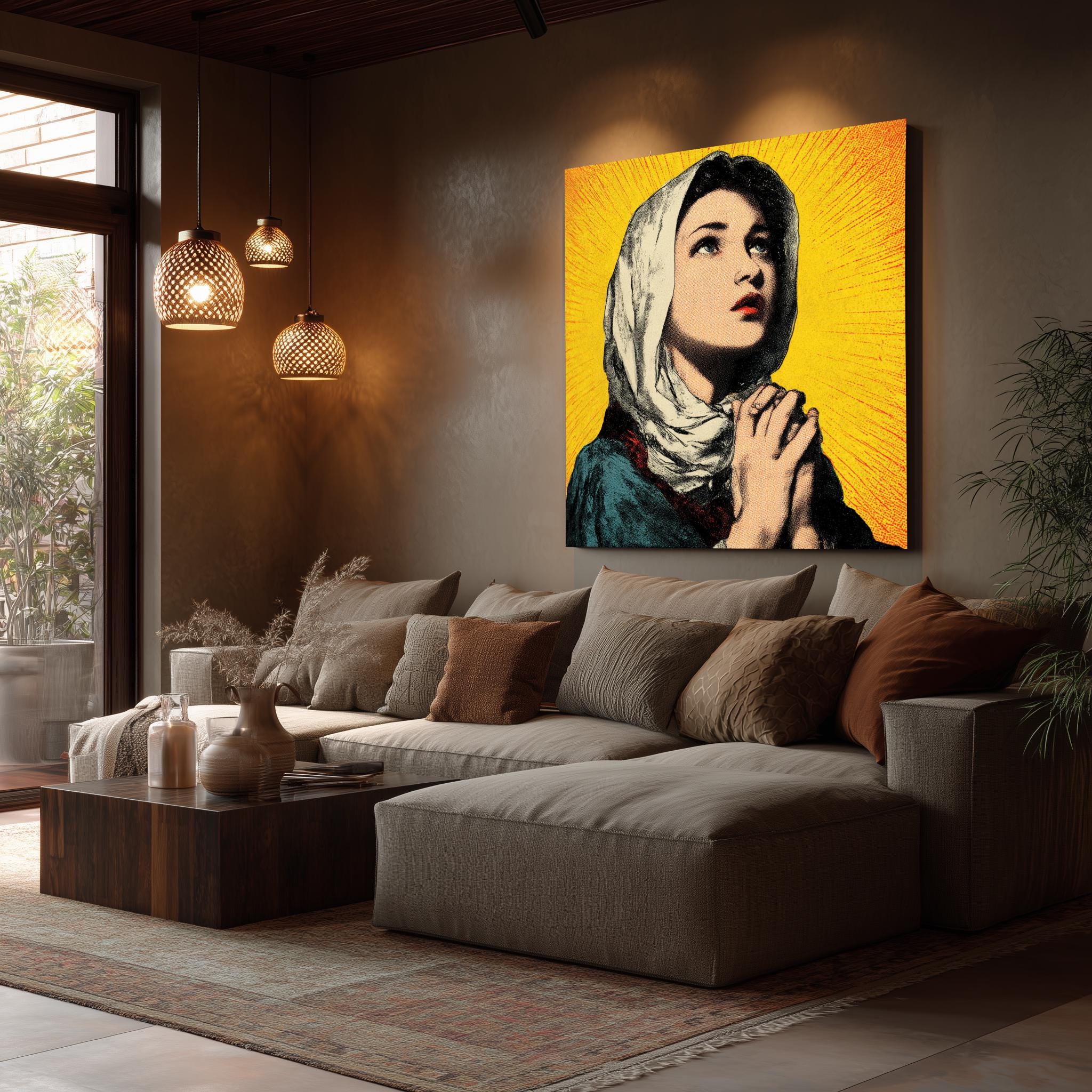 Religious Pop Art Poster - Vintage Praying Woman Print with Halo, Faith Inspired Gift