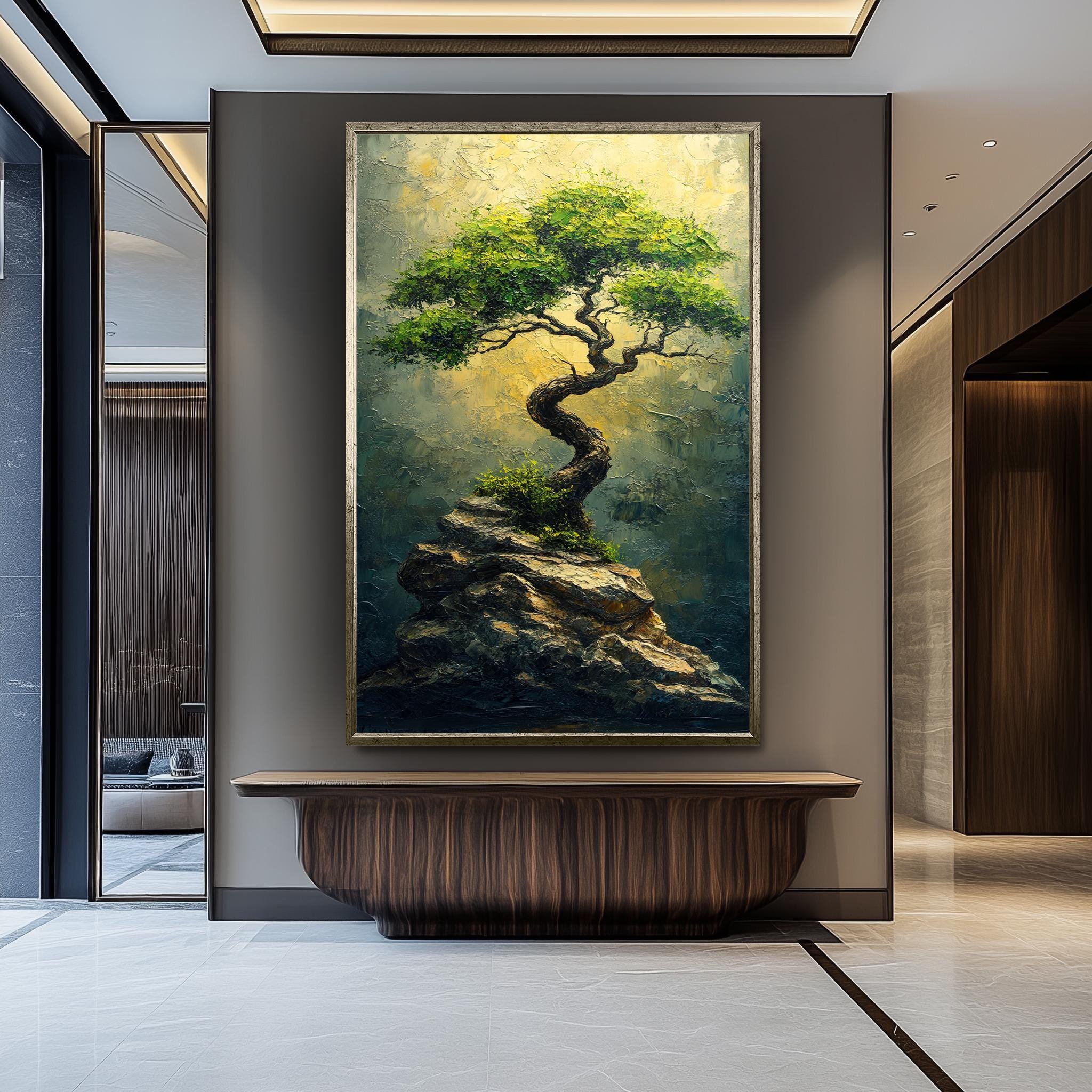 This inspiring landscape art is perfect for anyone looking to add zen inspired art or rustic wall decoration to their home. The resilient tree canvas print fits beautifully in meditation rooms or living spaces where grounding energy is desired. Our premium quality materials and expert craftsmanship ensure your nature wall art remains vibrant and captivating for years.