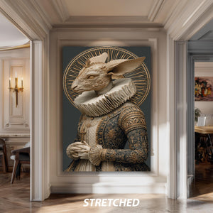 Sacred Rabbit Art Print - Baroque Animal Portrait | Gothic Halo Digital Decor