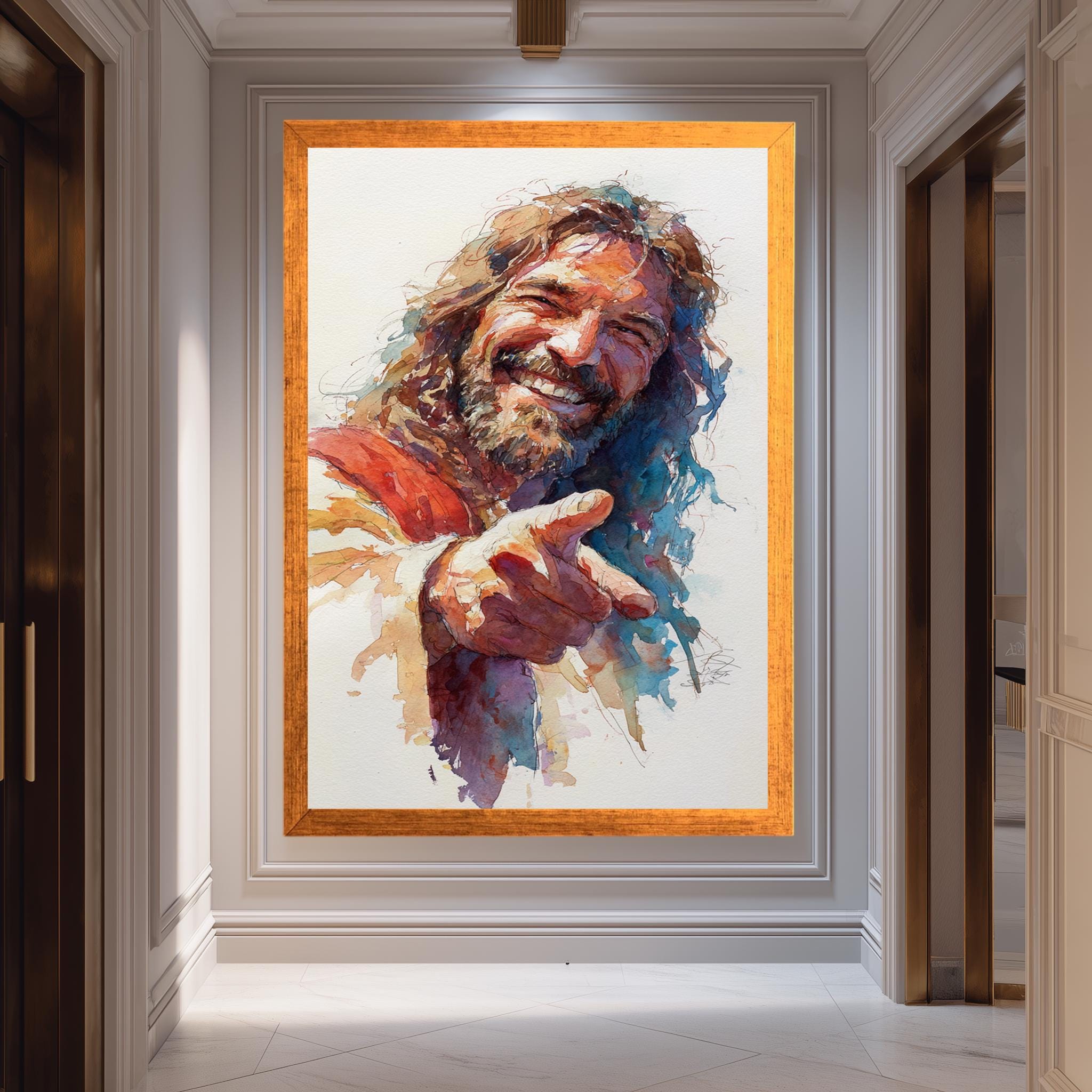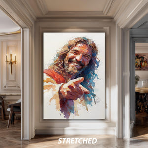 Smiling Jesus Watercolor Art brings a joyful and uplifting touch to your space with this modern religious decor piece. This printable faith art features a playful Christian poster design that combines humor and devotion, perfect for adding warmth and inspiration to any room. Crafted as a high-quality religious poster print, it delivers vibrant colors and detailed brushwork that capture the essence of happy Jesus painting and faith wall humor.