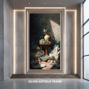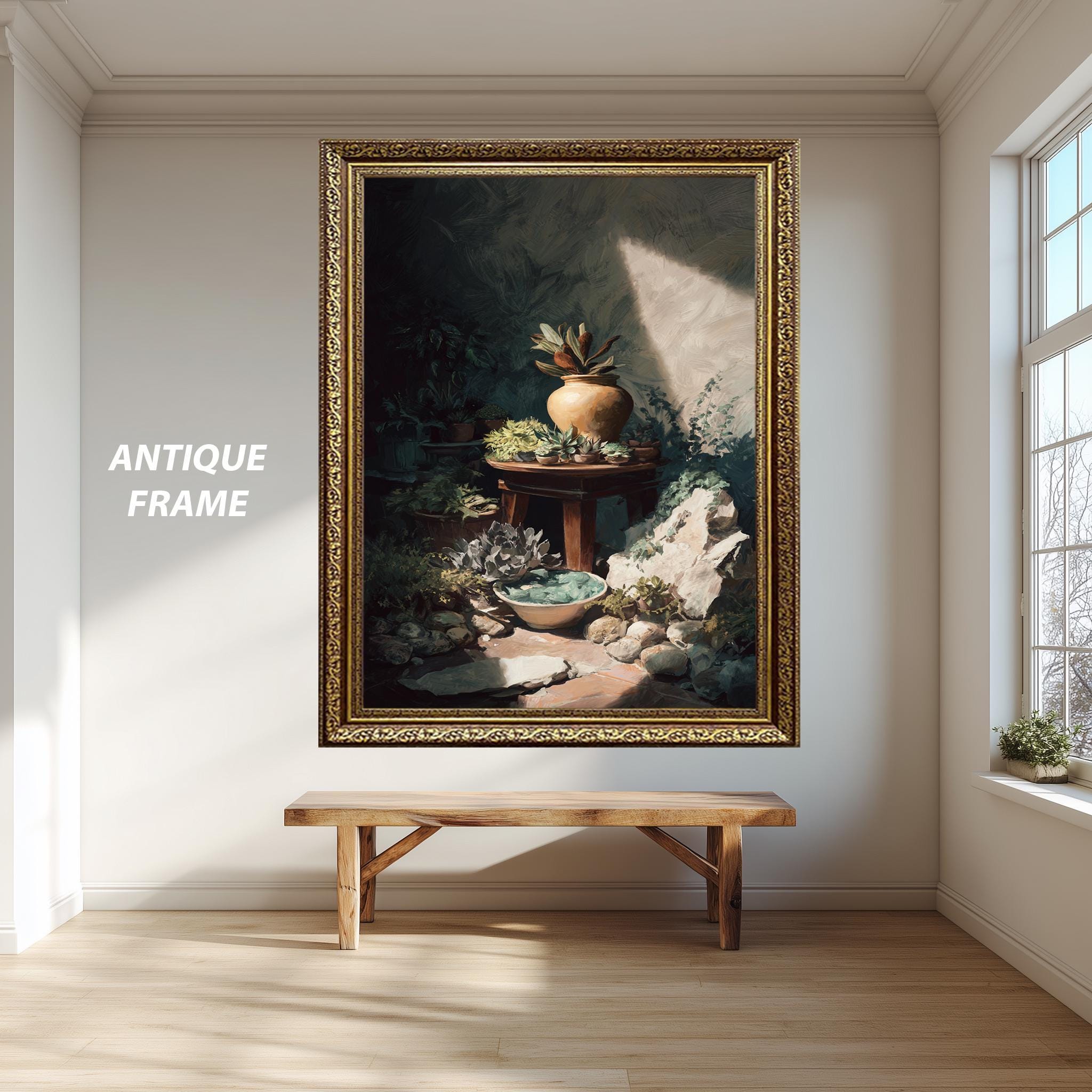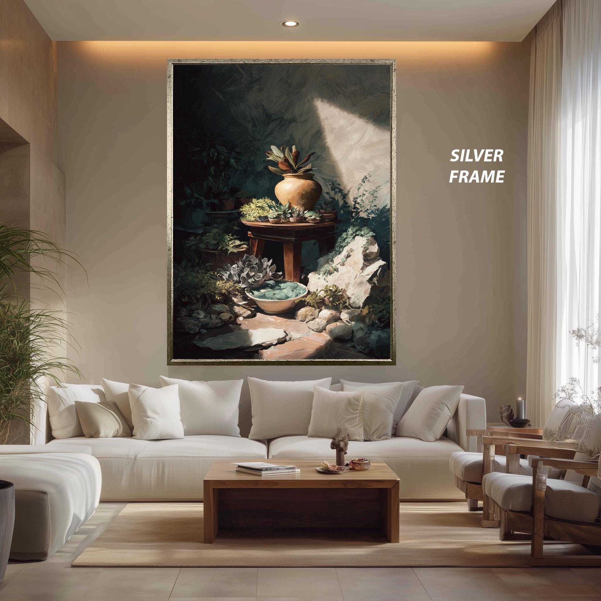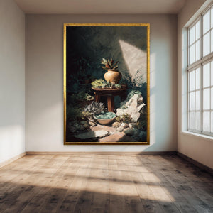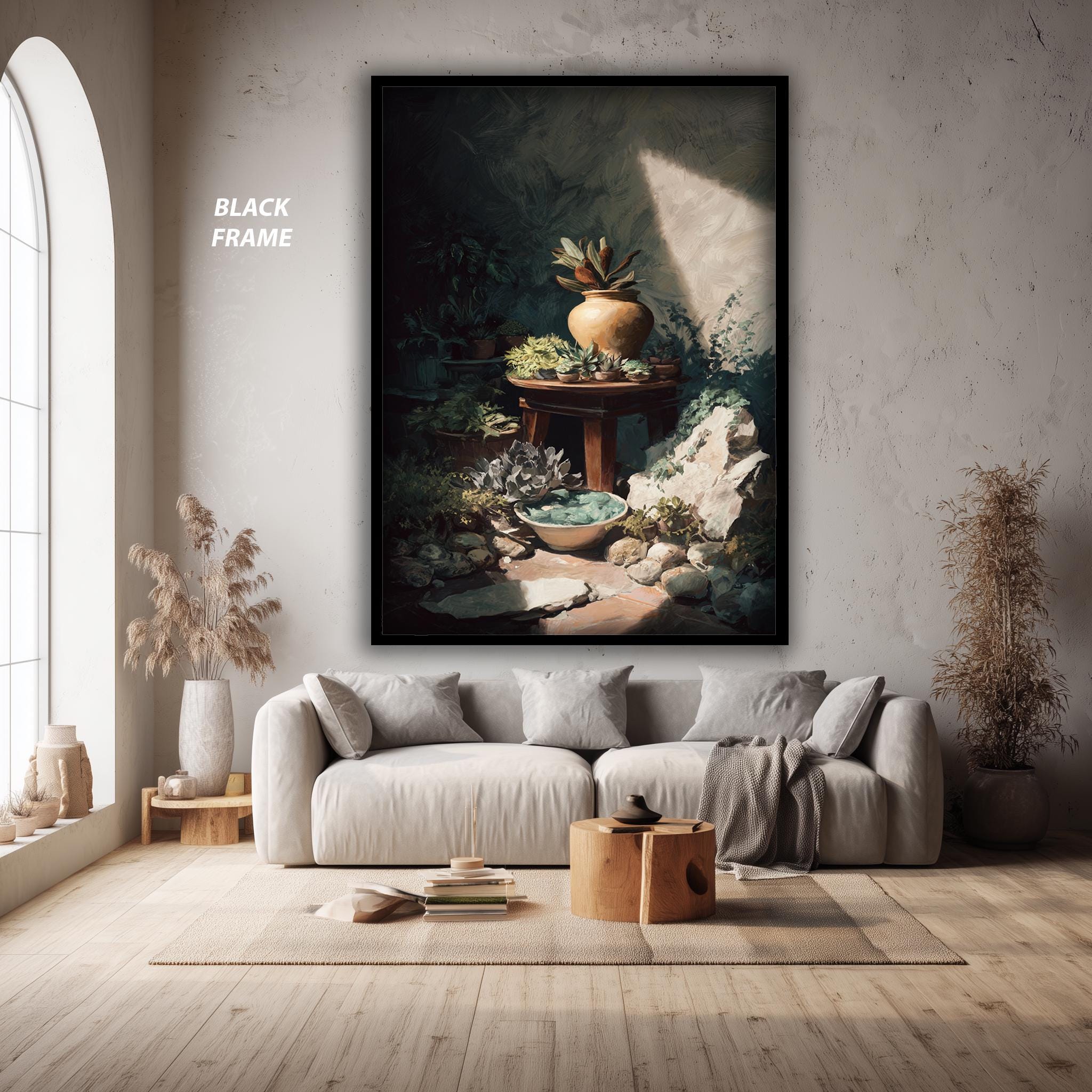 This succulent garden art print brings the calming beauty of nature indoors, featuring a peaceful still life nature print that transforms any space into a cozy, earthy home decoration. Designed for plant lovers and fans of rustic garden decor, this botanical wall art captures sunlight and natural elements in a way that enhances cottagecore wall decor and adds warmth to your living room, bedroom, or office. Printed on museum-quality canvas, this indoor plant poster offers vibrant colors and fine detail that last.