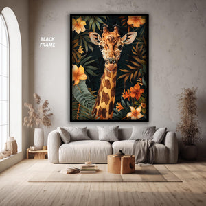 Tropical Giraffe Wall Art - Jungle Animal Print | Boho Wildlife Decor Canvas