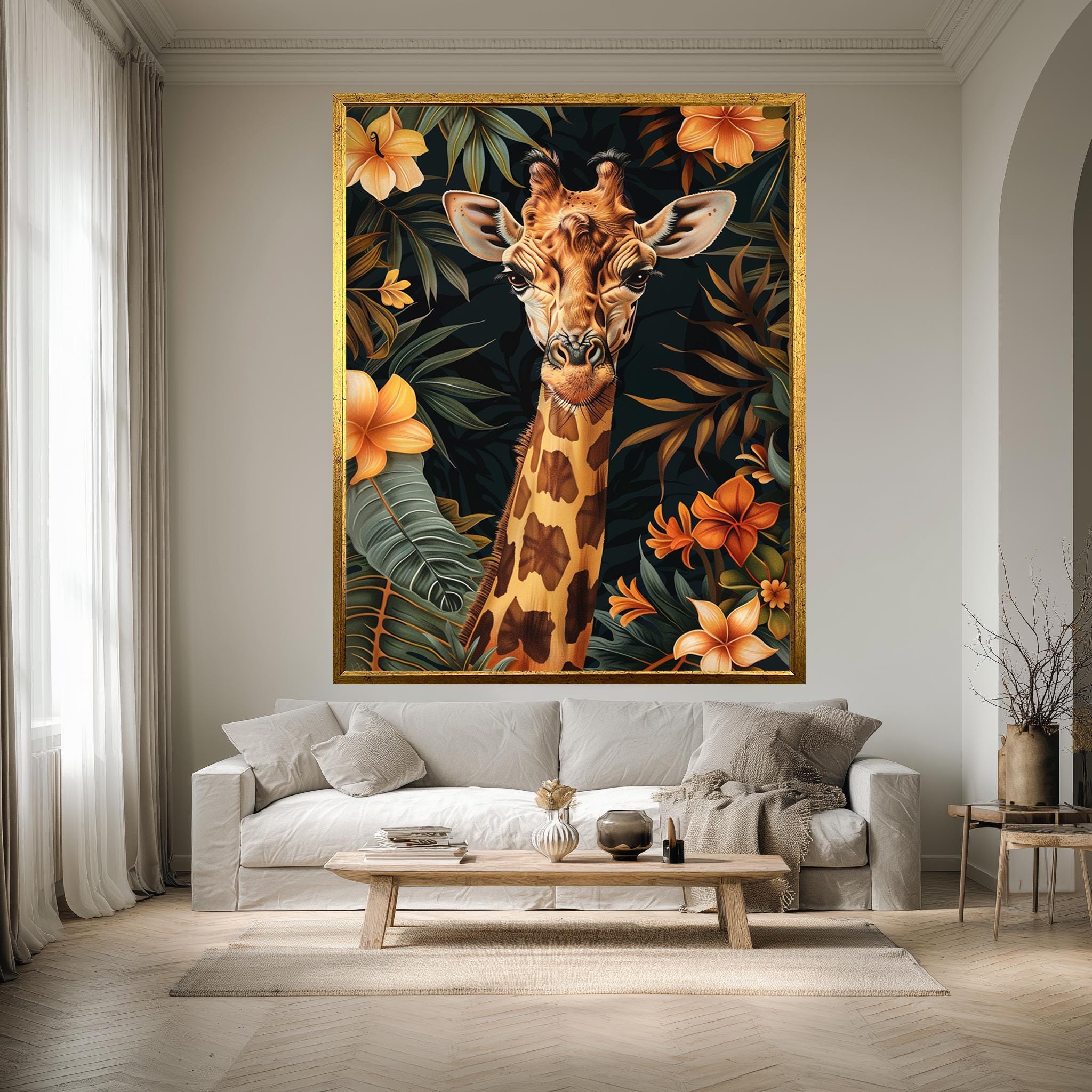 This tropical giraffe wall art transforms any room by adding warmth and sophistication while reflecting your love for wildlife and nature. It is an ideal gift for animal lovers and fans of exotic decor.