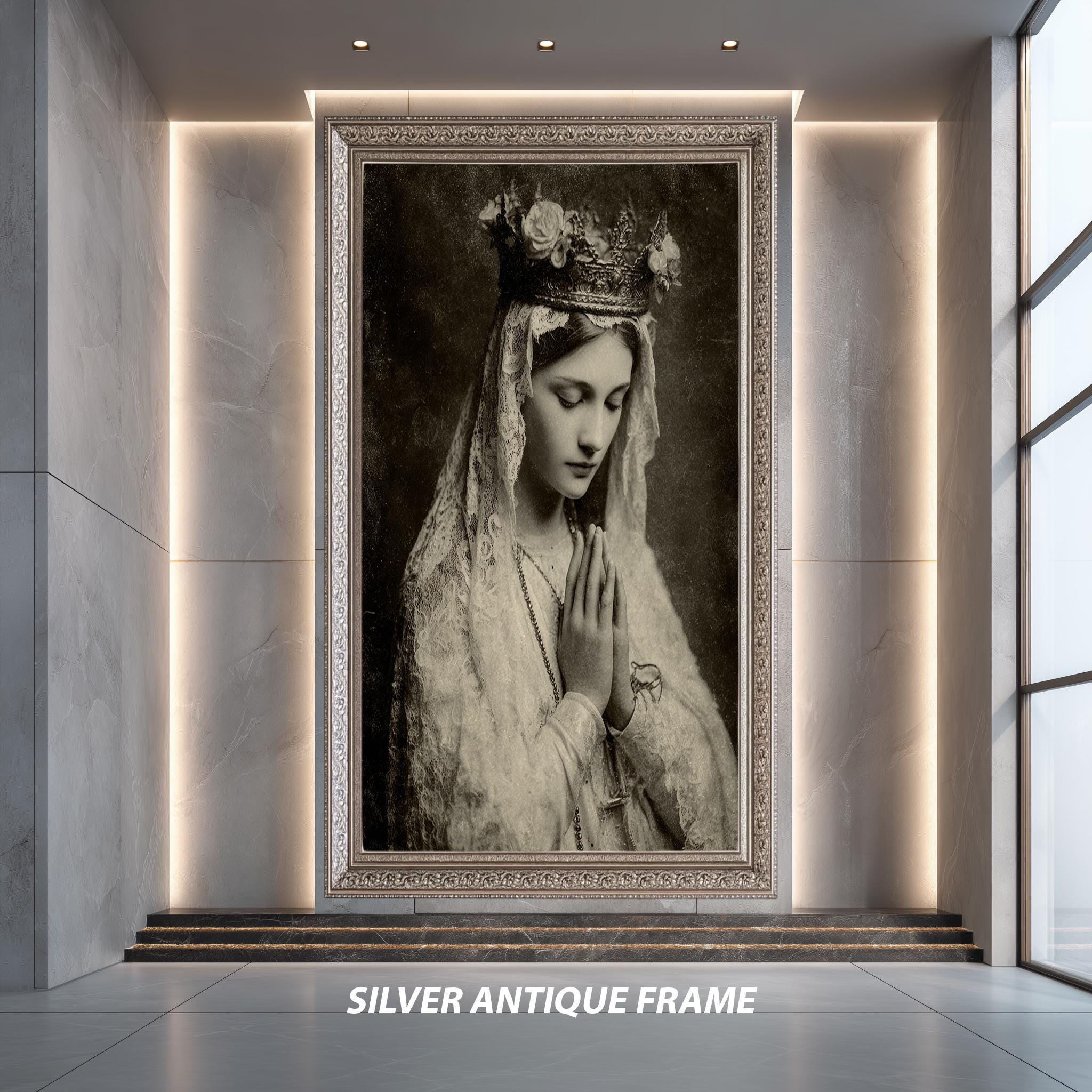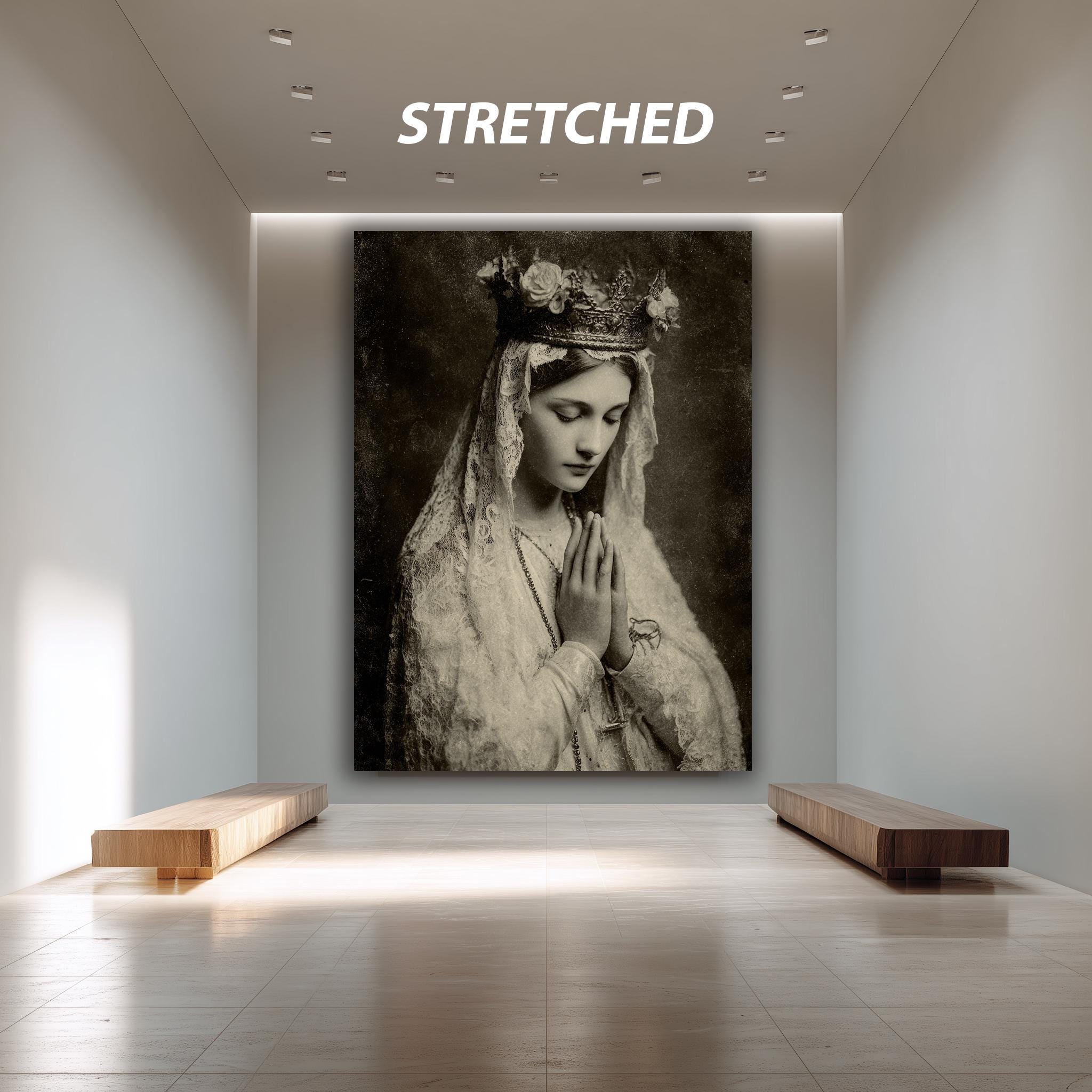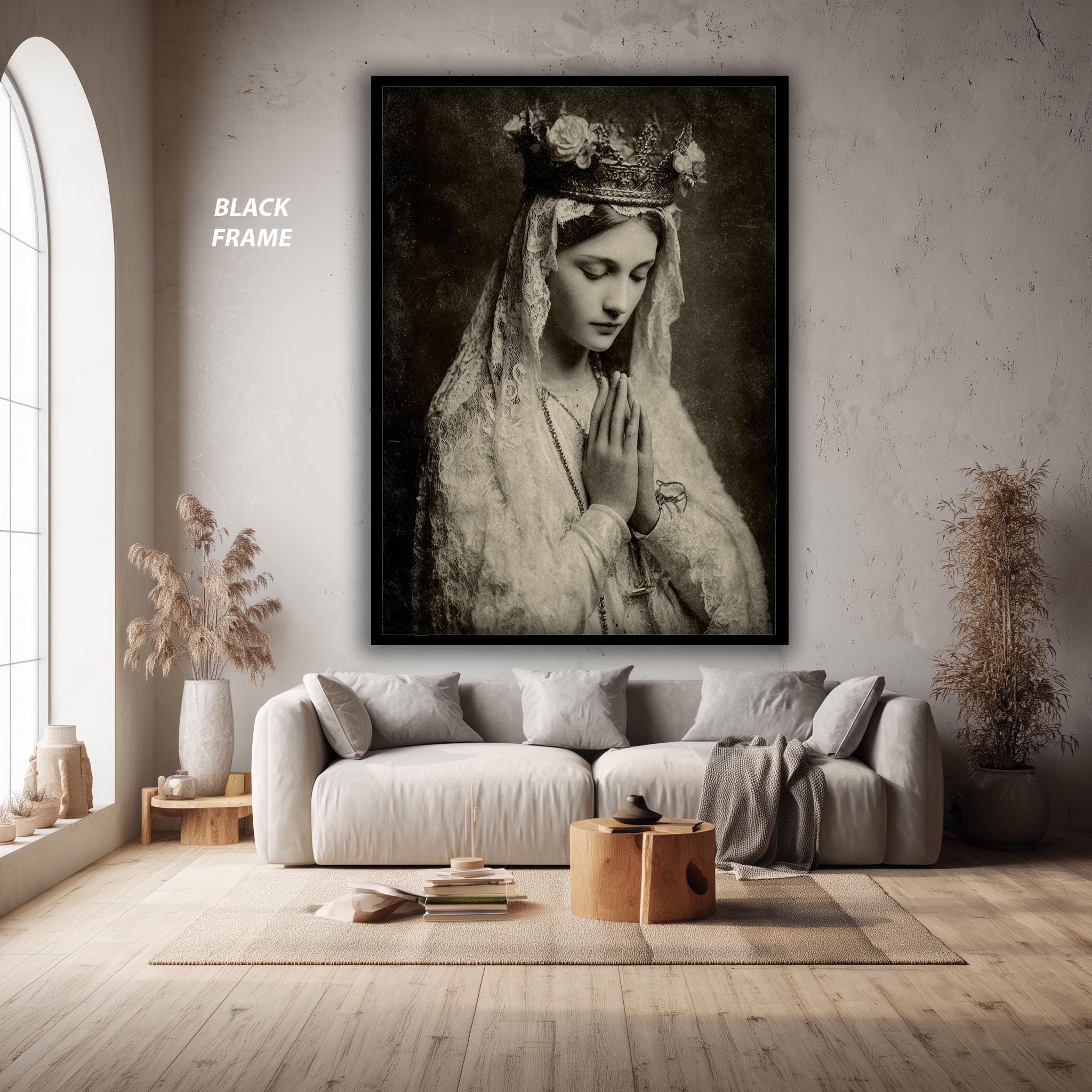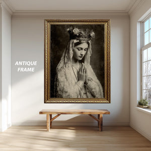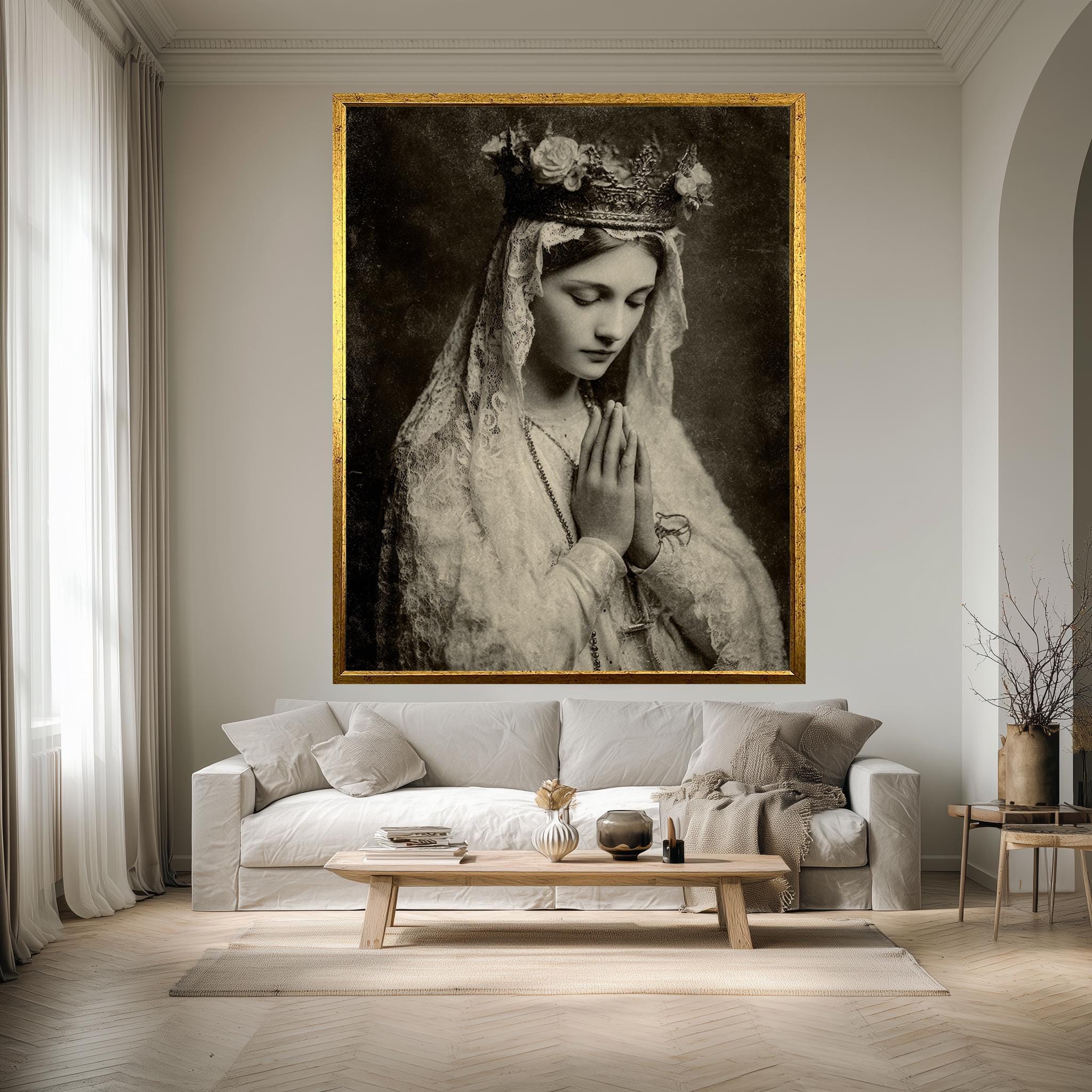 This vintage sacred prayer portrait captures the essence of faith and devotion, making it a perfect addition to any home seeking holy religious wall art that inspires calm and reverence. Printed on a sepia tone canvas print, this devotional antique artwork features a serene religious woman portrait that evokes a sense of peace and spiritual connection. The sacred antique print measures from 8"x12" (20x30cm) up to 59"x98" (150x250cm), offering versatile sizing options to suit your space. Whether used as a catholic wall decoration or a blessed prayer art piece, this faith inspired decor is designed to enrich your environment with timeless spiritual beauty.