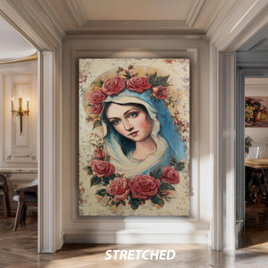 Virgin Mary Art Print - Rustic Catholic Wall Decor | Rose Crown Floral Madonna