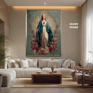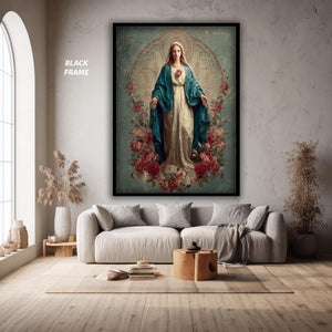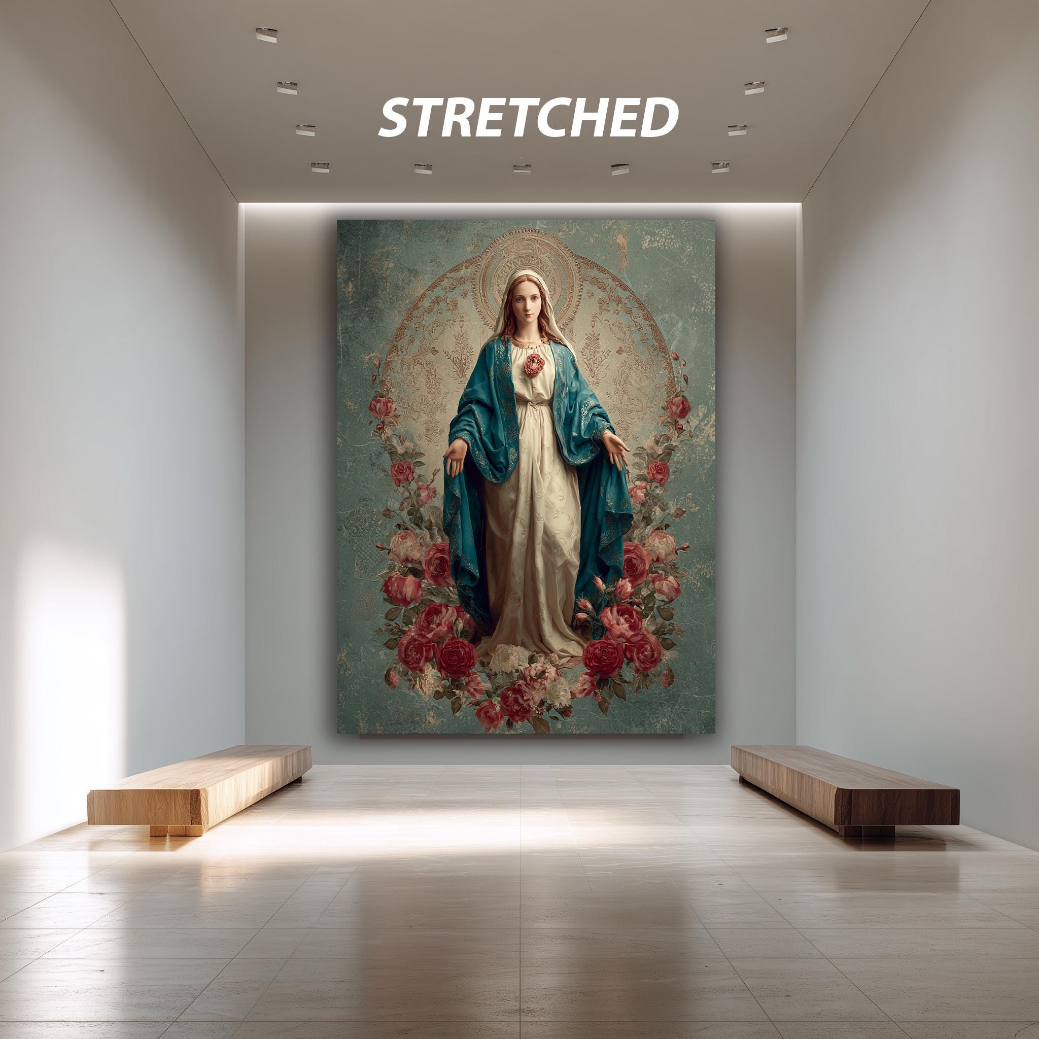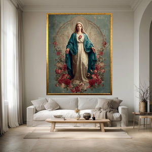 Crafted on museum-quality canvas, this sacred wall decor features vibrant colors and fine details that highlight the holy mary artwork's spiritual depth. The minimalist catholic art style complements modern interiors while honoring traditional faith themes. Our advanced printing techniques ensure long-lasting beauty and clarity, making this roses wall decoration both a devotional catholic print and a timeless keepsake.